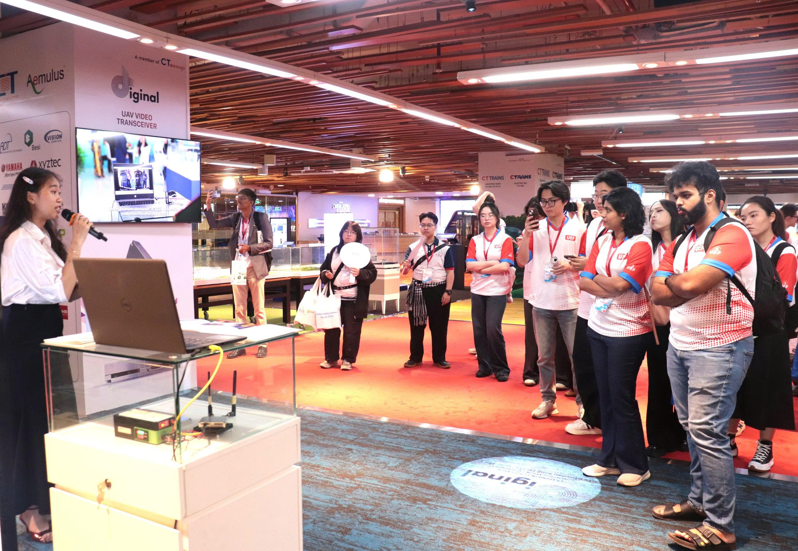 Ngày 19/03/2026, đoàn 100 sinh viên quốc tế từ các Đại học trên thế giới như Đại học Quảng Tây (Trung Quốc), Đại học Kinh Tế Tài chính Giang Tây (Trung Quốc), Đại học Sigma (Ấn Độ), Đại học Quốc lập Khoa học Công nghệ Đài Trung (Đài Loan), Đại học Rangsit University (Thái Lan), Học viện Công nghệ và Nhân văn First Asia (Philippines)… đang học tập trao đổi tại Trường Đại học Kinh tế – Tài chính TP.HCM (UEF), đã có chuyến tham quan và tìm hiểu về 12 ngành công nghệ cao tại CT Innovation Hub 4.0 – Trung tâm Đổi mới Sáng tạo thế hệ mới 4.0 đầu tiên tại Việt Nam, hội tụ sức sáng tạo mạnh mẽ của nhân tài 4.0.