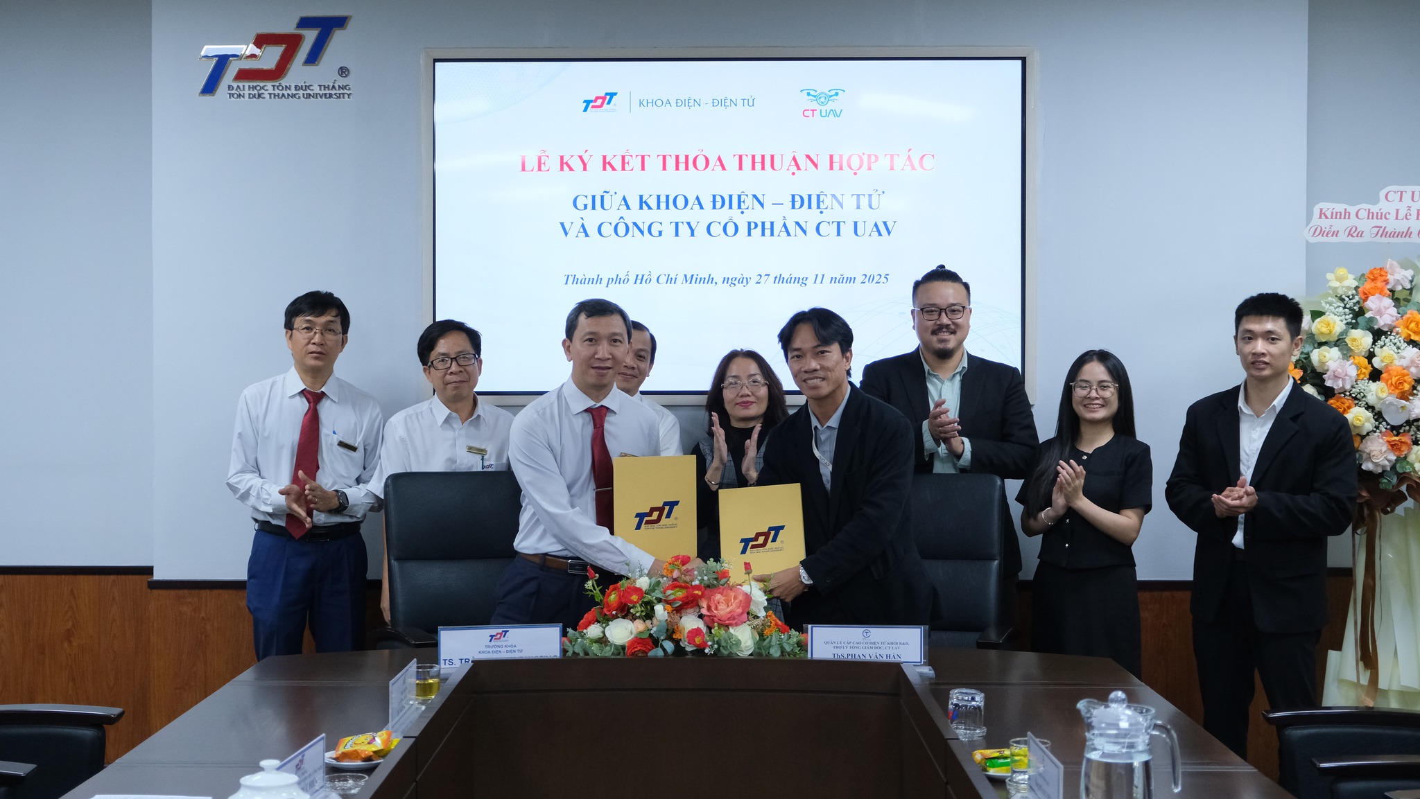 Ngày 27/11/2025, CT Group và CT UAV (thành viên tập đoàn CT Group) đã ký kết hai biên bản hợp tác quan trọng: Thỏa thuận hợp tác chiến lược giữa CT Group và Trường Đại học Tôn Đức Thắng (TDTU); và Bản ghi nhớ hợp tác giữa CT UAV và Khoa Điện – Điện tử.