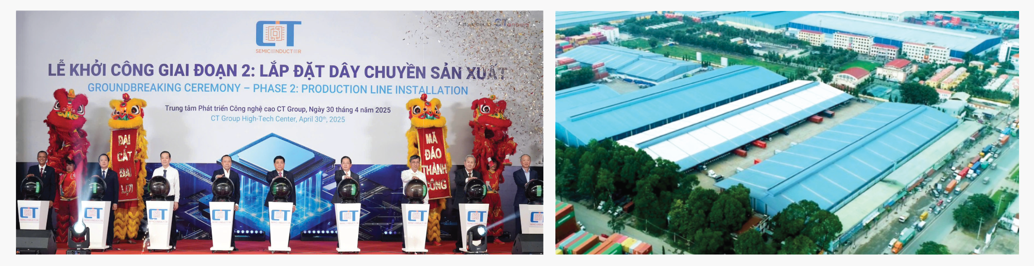 Công ty CT Semiconductor đang xây dựng nhà máy lắp ráp đóng gói và kiểm thử chip bán dẫn đầu tiên do người Việt Nam làm chủ công nghệ tại Khu công nghệ số tập trung CT Group trên đại lộ DT743, Thuận An (gần Đại học Quốc gia TP.HCM).
